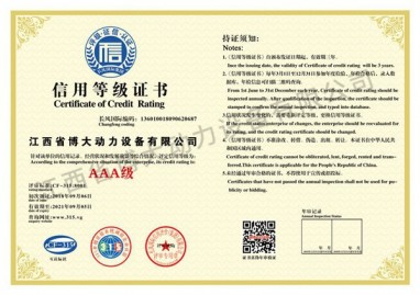 • 信用等級(jí)證書
